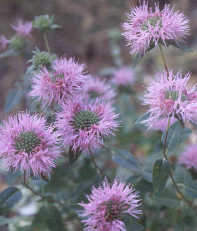 Bushy perennial to a foot high with pleasantly mint-scented leaves and heads of tubular blue or purple flowers in summer. Attracts butterflies and bumblebees. Drought tolerant; needs good drainage.