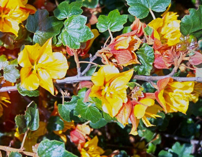 Large, evergreen shrubs with maplelike leaves and showy, yellow-orange flowers in late spring and early summer. Drought tolerant and sun loving.